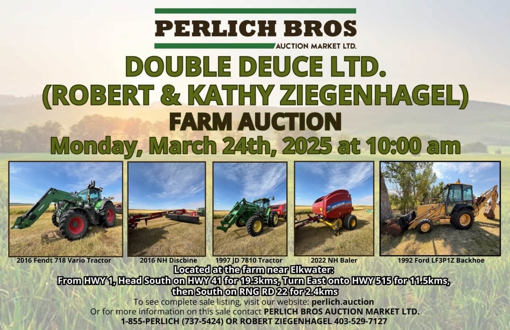 Perlich Bros is honoured to conduct the Double Deuce Ltd. (Robert & Kathy Ziegenhagel) Farm Auction