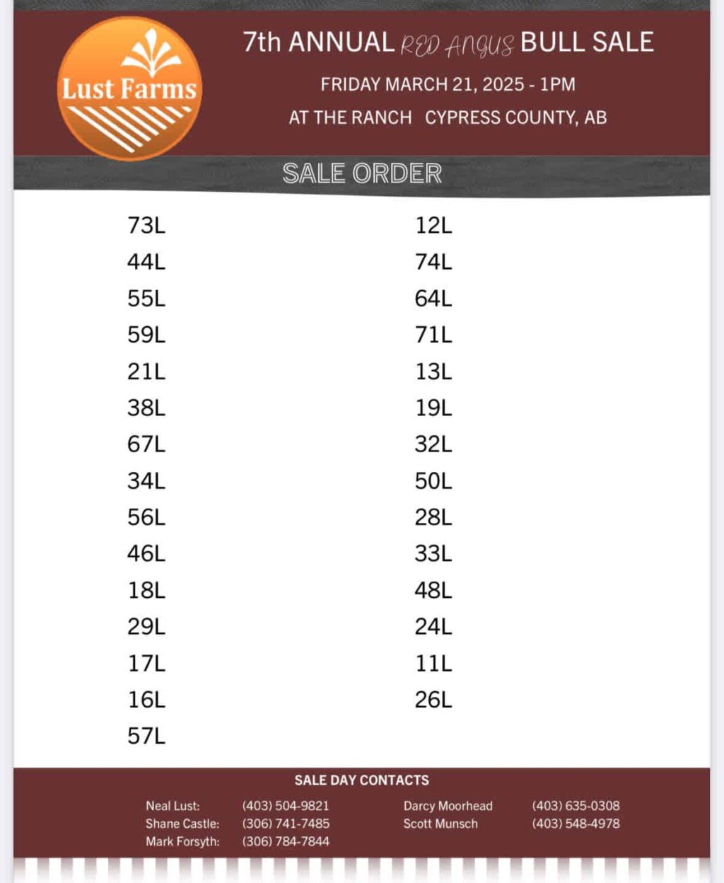 Friday March 21st at 1:00pm at the Ranch in Cypress County