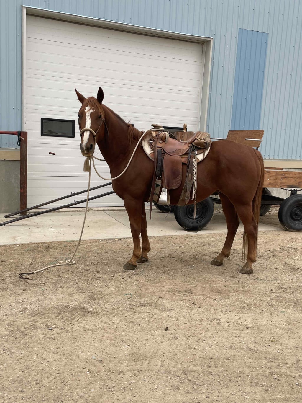 Jake is a good using horse that can and has done all kinds of ranch work, rope calves, big cows, feedlot, go all day! Will make a great feedlot horse.