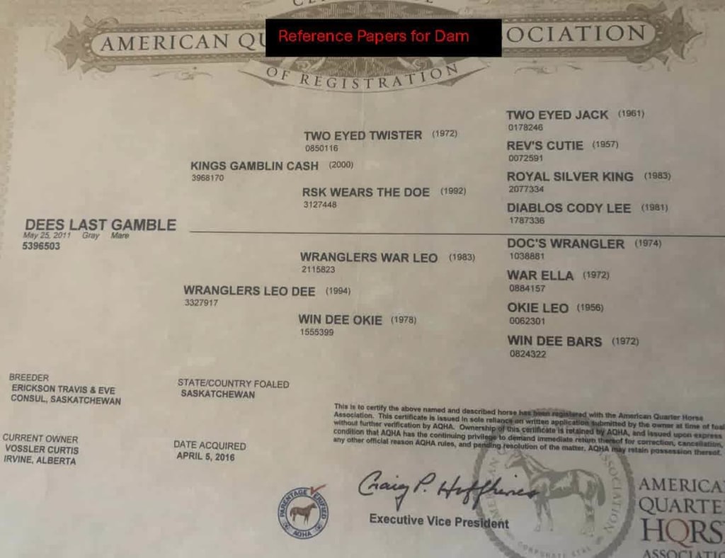 Really really nice colt here and comes with some chrome. He's out of our hancock stud and WRANGELER WAR LEO mare. Sells on application.
