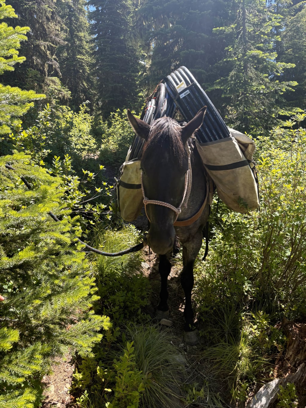 Blue is a 6 year old grade, blue roan QH gelding. He has done many trips into the mountains. Both ridden and packed. He has been started a bit on heading and is doing good. He bucked a bit when he was at the trainer, but is doing good in the hunting string this fall. Not for a beginner. He is big and strong and needs a consistent job.