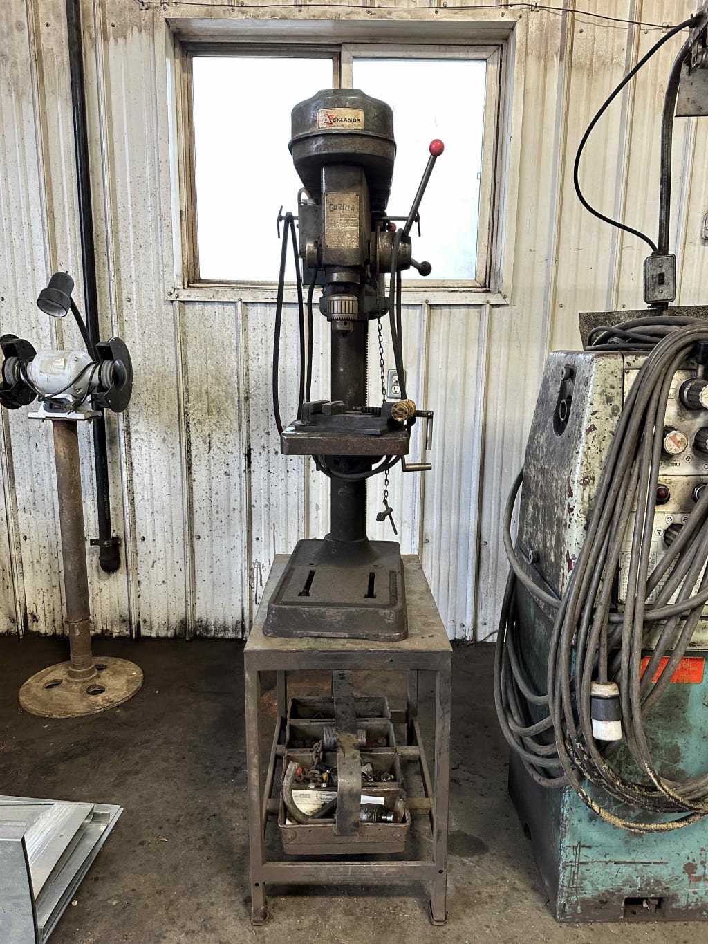 Auckland’s Drill press Model LCN-14 Phase 1 motor 115 volt plug in Comes with stand and contents