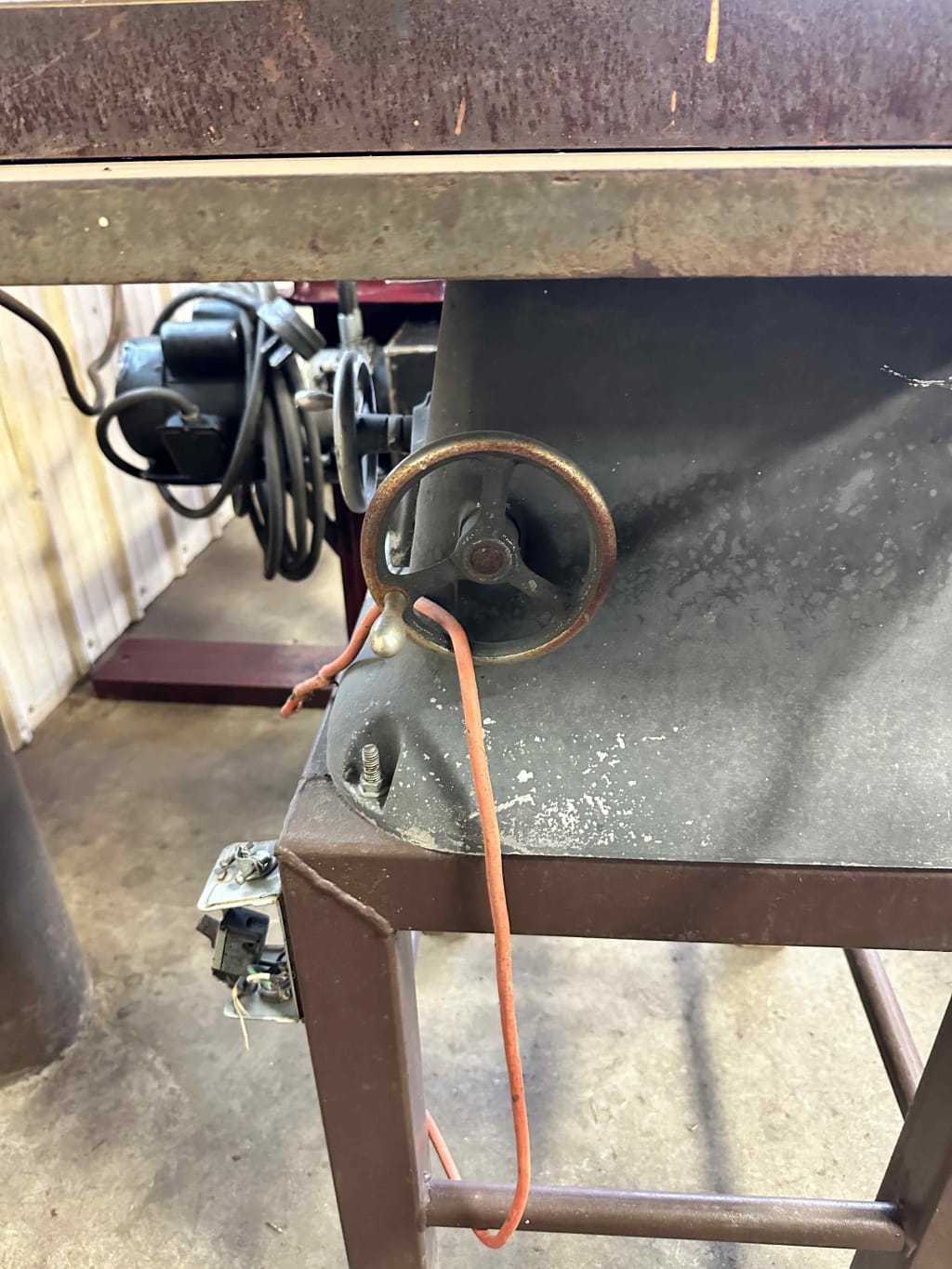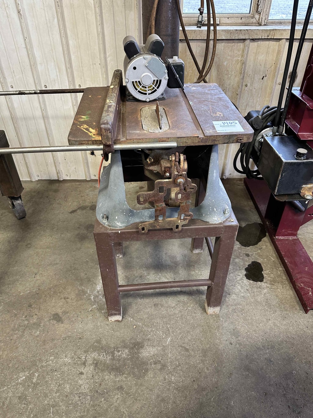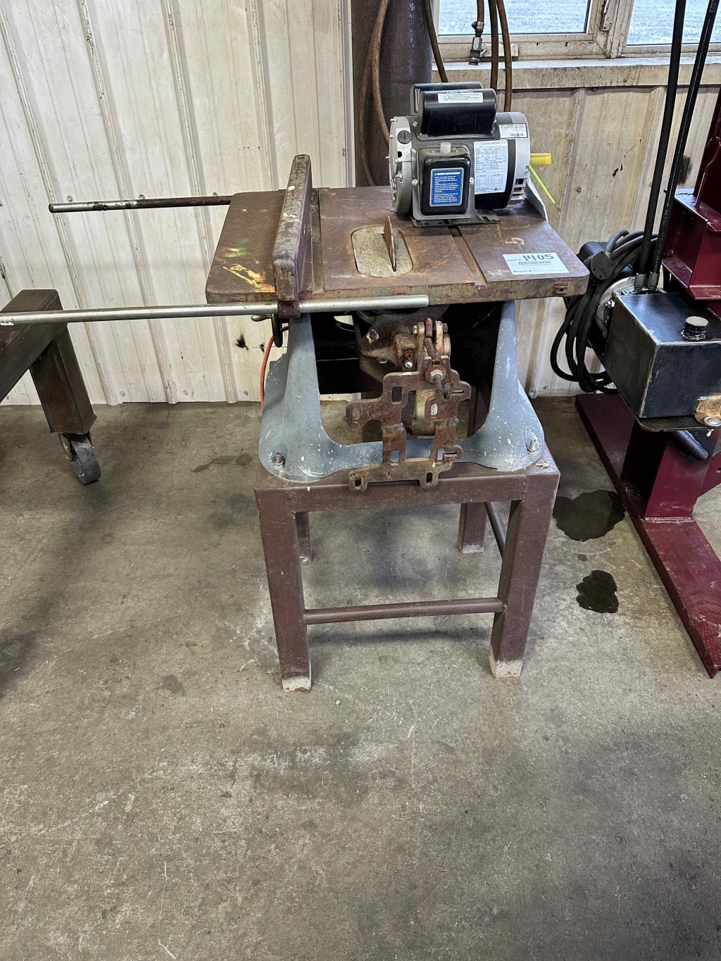 Table Saw on a nice heavy stand Comes with electric motor that is: Single Phase 2 HP 3450 RPM 115/230 Volts Thermal Overload Protection