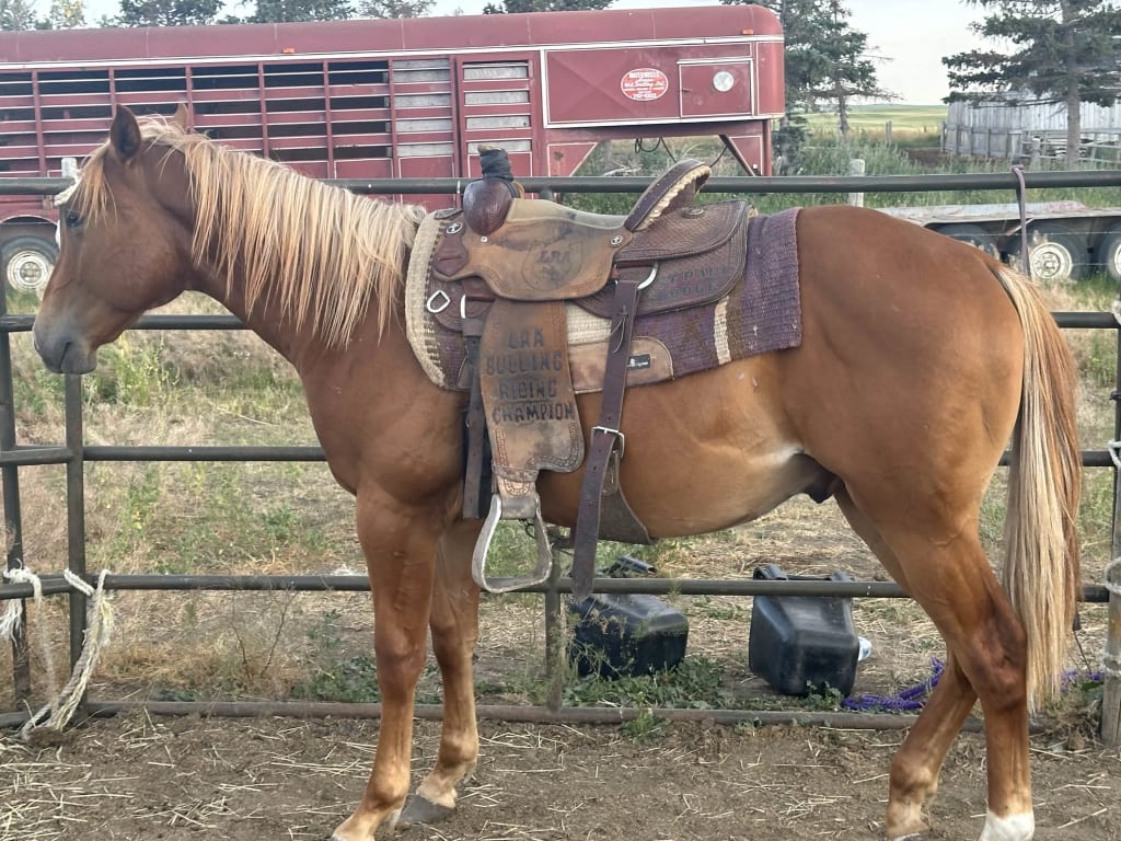 Spice is a 2yr old grade quarter horse gelding. If you are looking for a super quiet level headed colt this is your guy. Spice has been one of the easiest colts we have started. After 30 days of training he moves around the arena smoothly and quietly with a low head carriage. He gives to your hands and will move off your leg when asked. Spice has had a rope swung on him and without issue will stand quietly for you to throw shots on the roping dummy. Spice is built straight with a pretty face, big hip and a very pleasant personality and will meet you at the gate to be caught. Will mature to approx. 15hh and is sure to not disappoint. Spice is up to date on shots, worming and farrier work