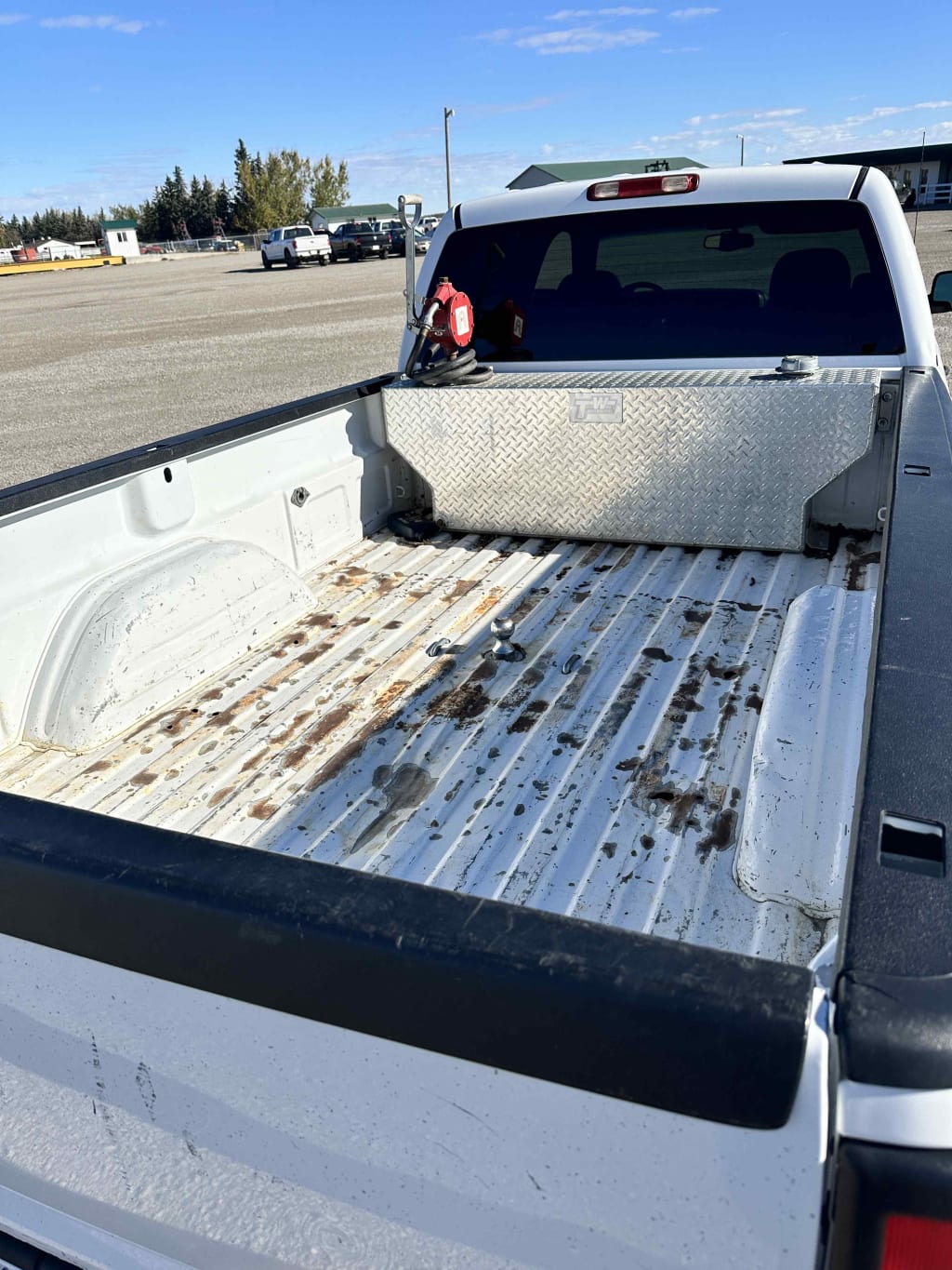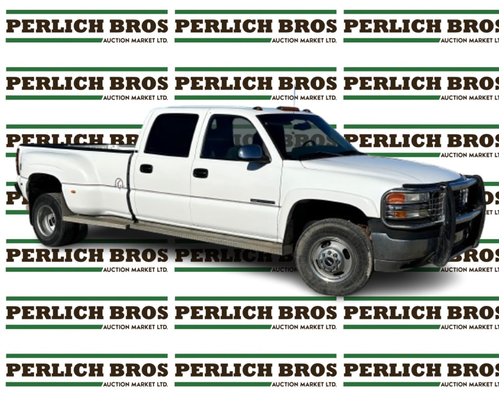 Description | **2001 GMC 3500 (1 Ton) 4x4 Dually** - 502 Gasoline Engine (8.1L) - Allison Transmission - 222,101 KM - Cab with air, heater, radio - Slip tank with Fill-Rite pump - Hidden hitch 5th wheel - VIN: 1GTJK33G31F145671 |