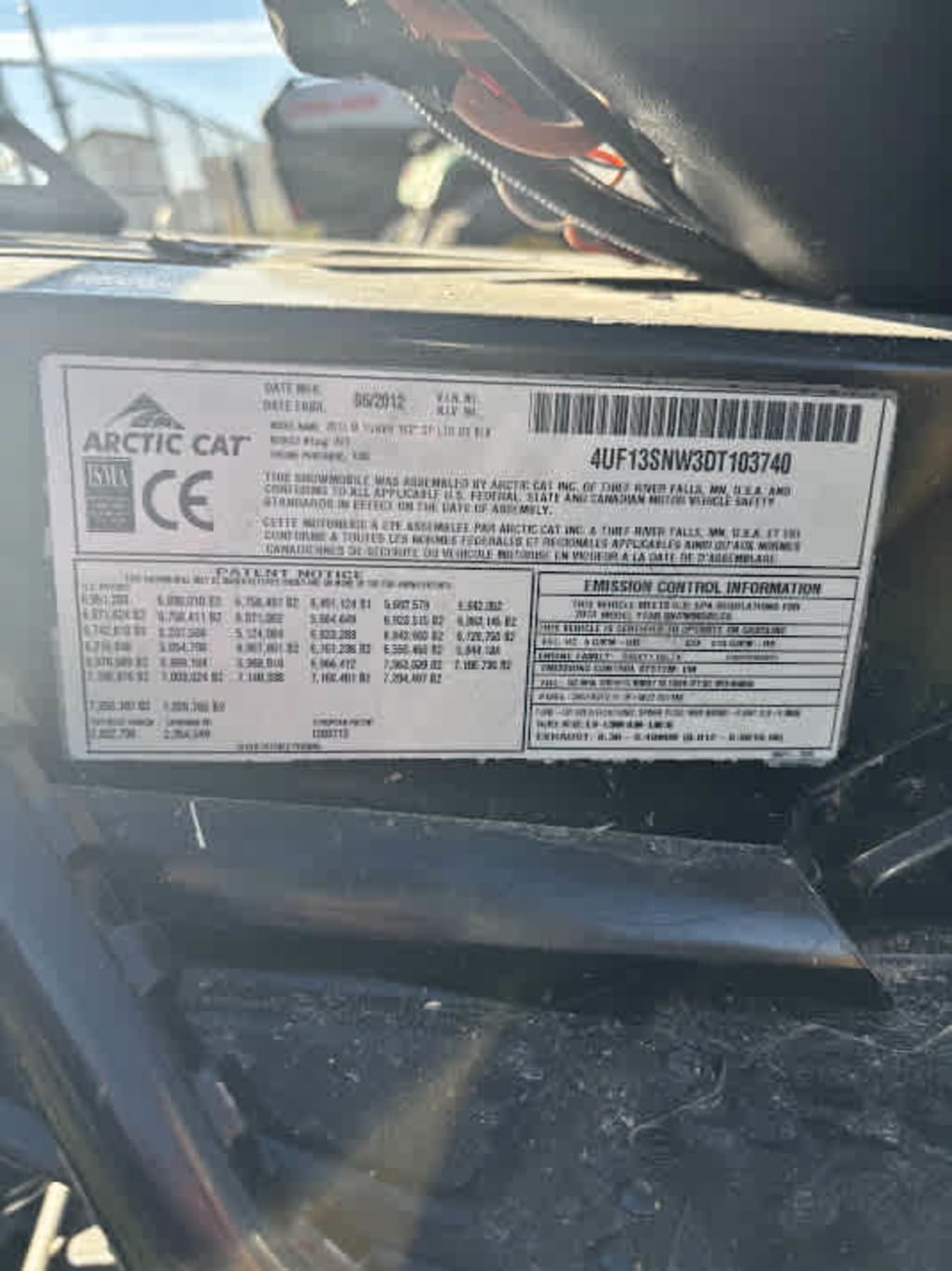 2014 Arctic Cat Skidoo, 60hrs, 550km at time of listing, 1100CC, Handle Bar & Seat Warmers