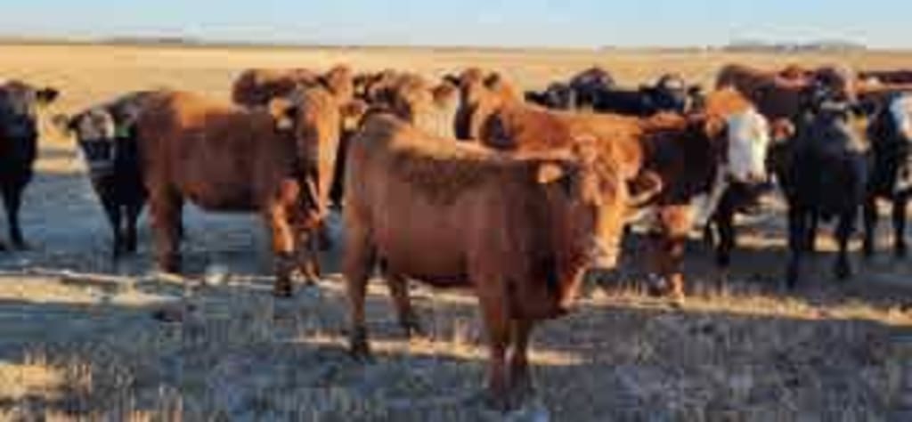 Pasture Bred to Red Angus X Simm Bulls. WS All Aboard B80 Son.