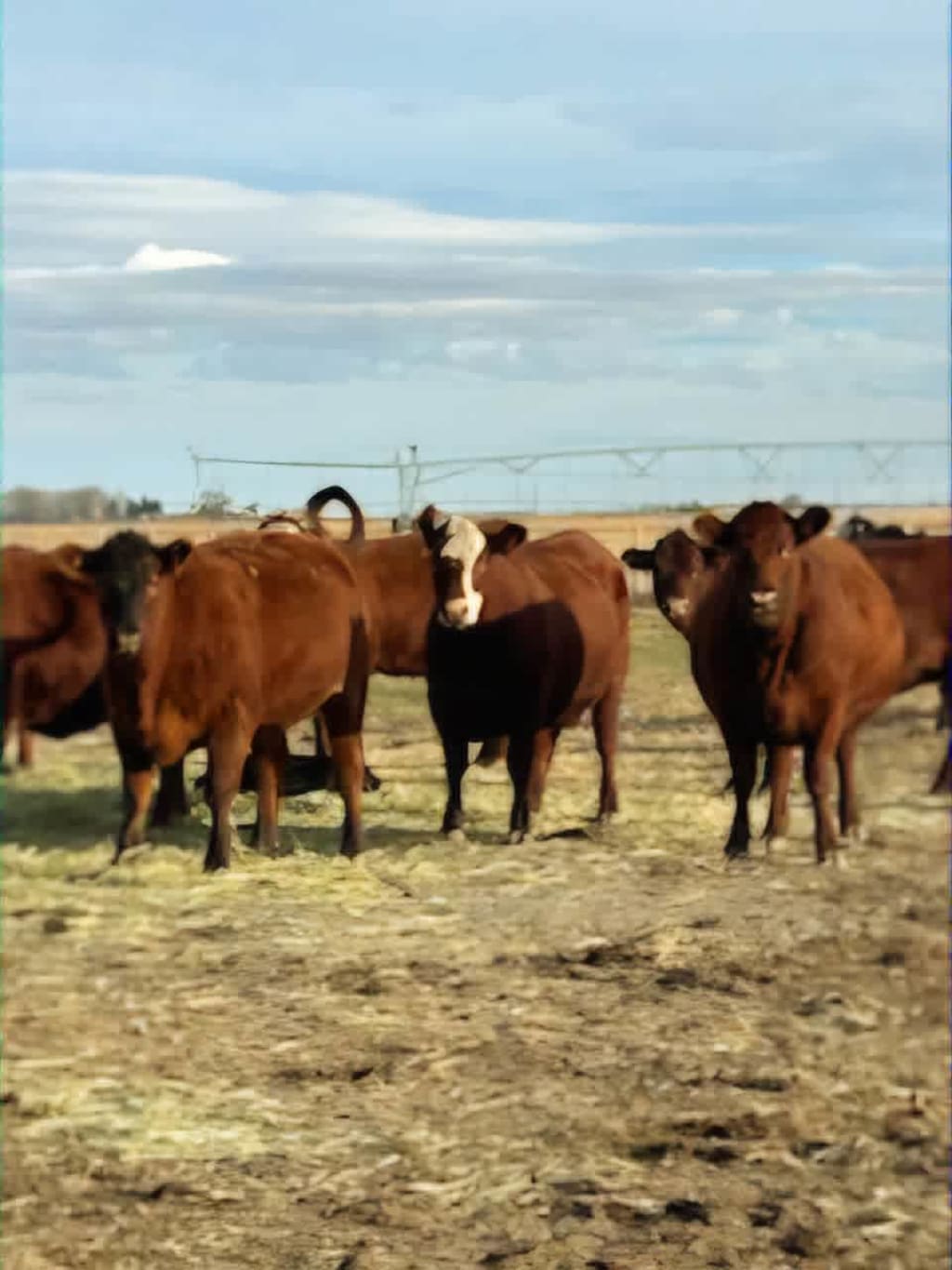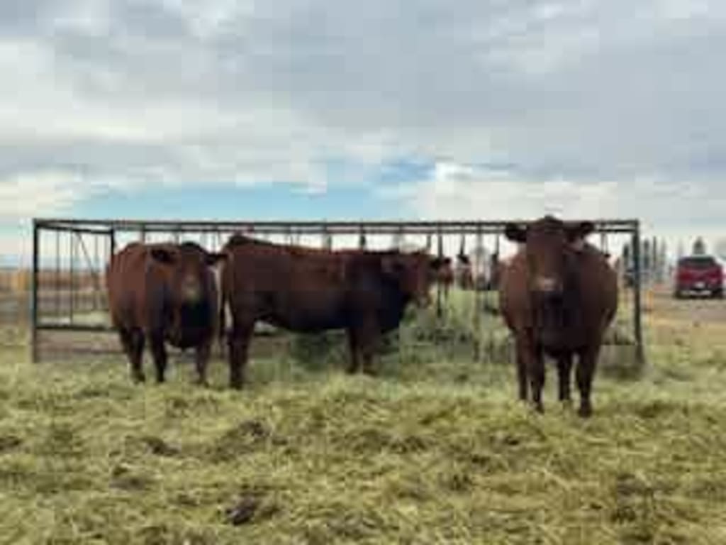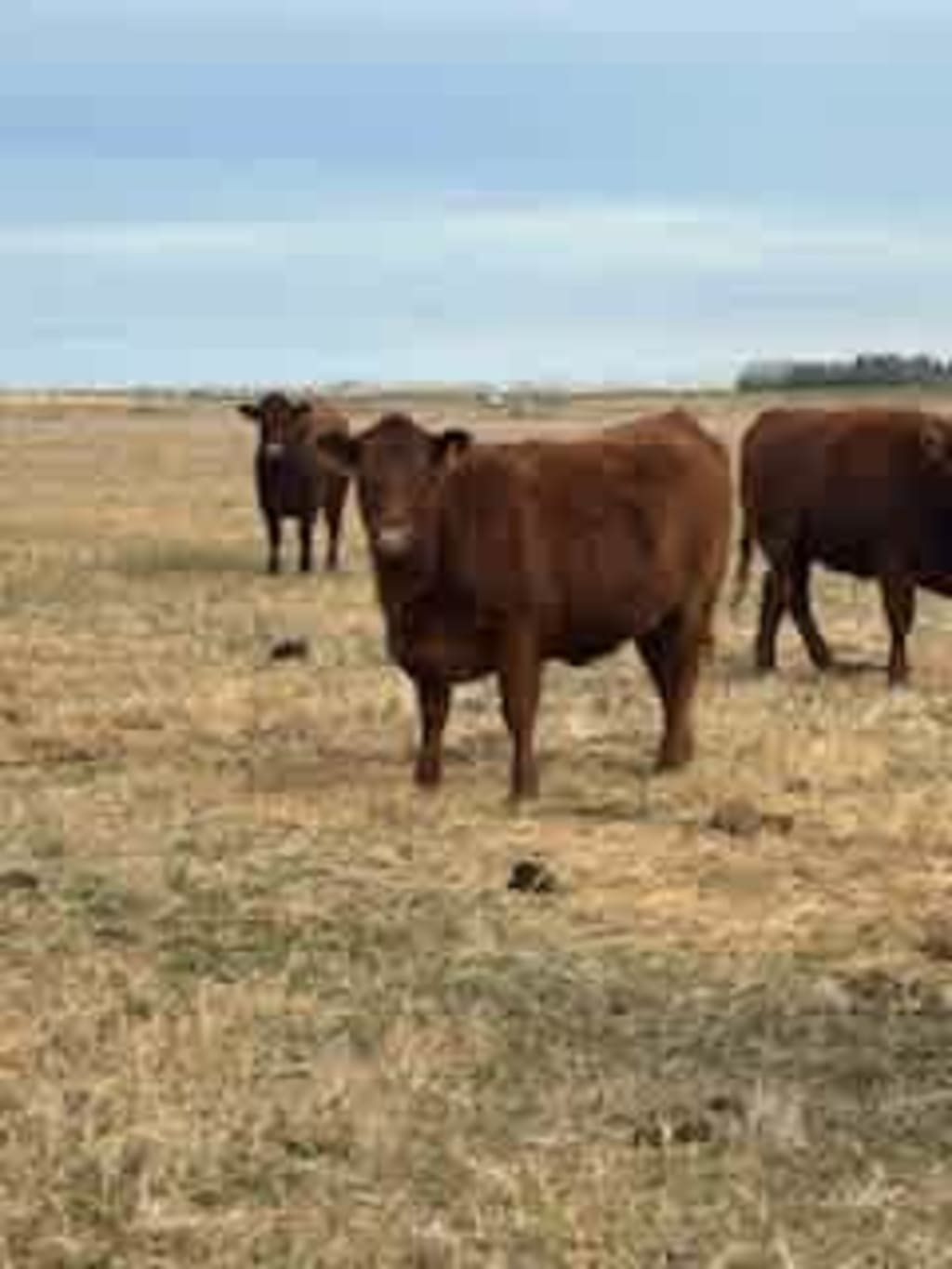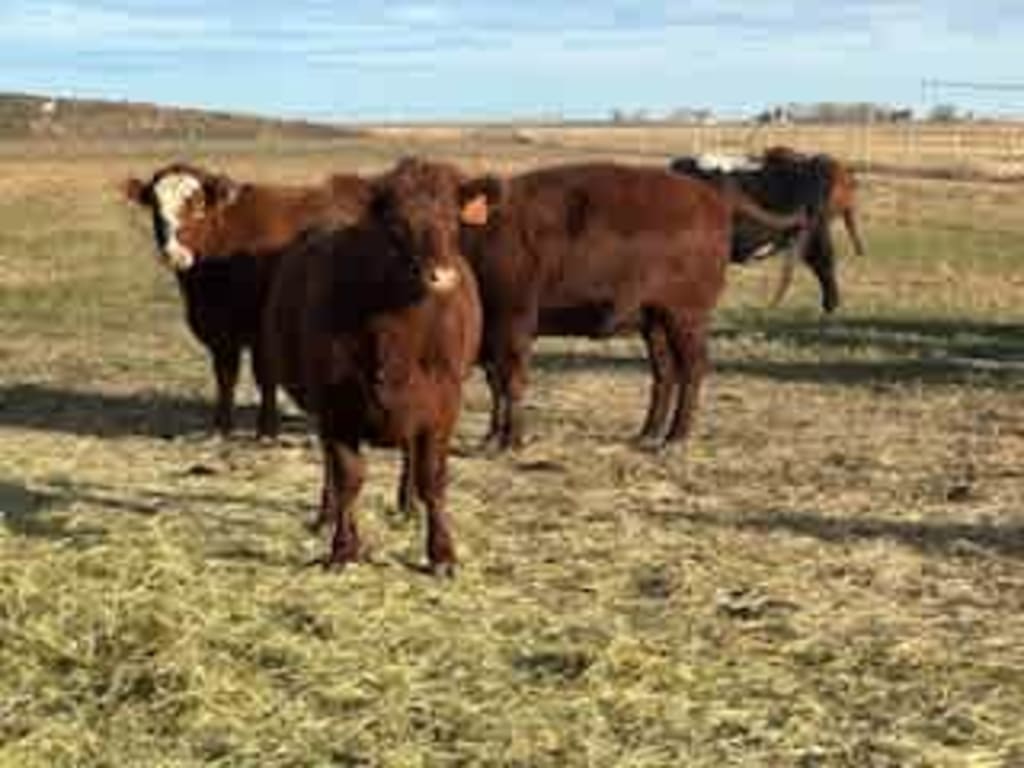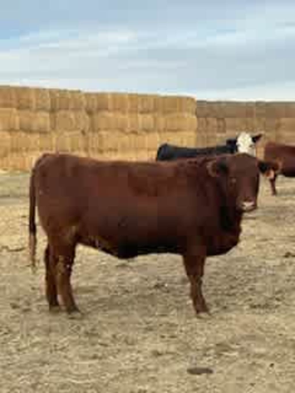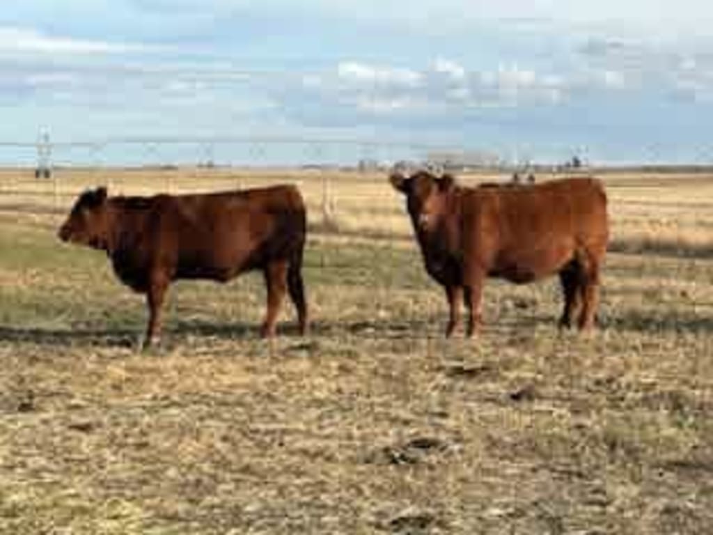 Summary | A&S FARMS 40 Good Looking Solid Red Angus Hfrs, 1100lbs to 1200lbs AI bred to low birth wt Charolais Bulls June 10th to 14th. Then pasture bred to low birth wt Charolais Bulls. Bulls pulled July 22nd These hfrs were exposed for a 40 breeding program. Full Herd Health program; including scourguard. |