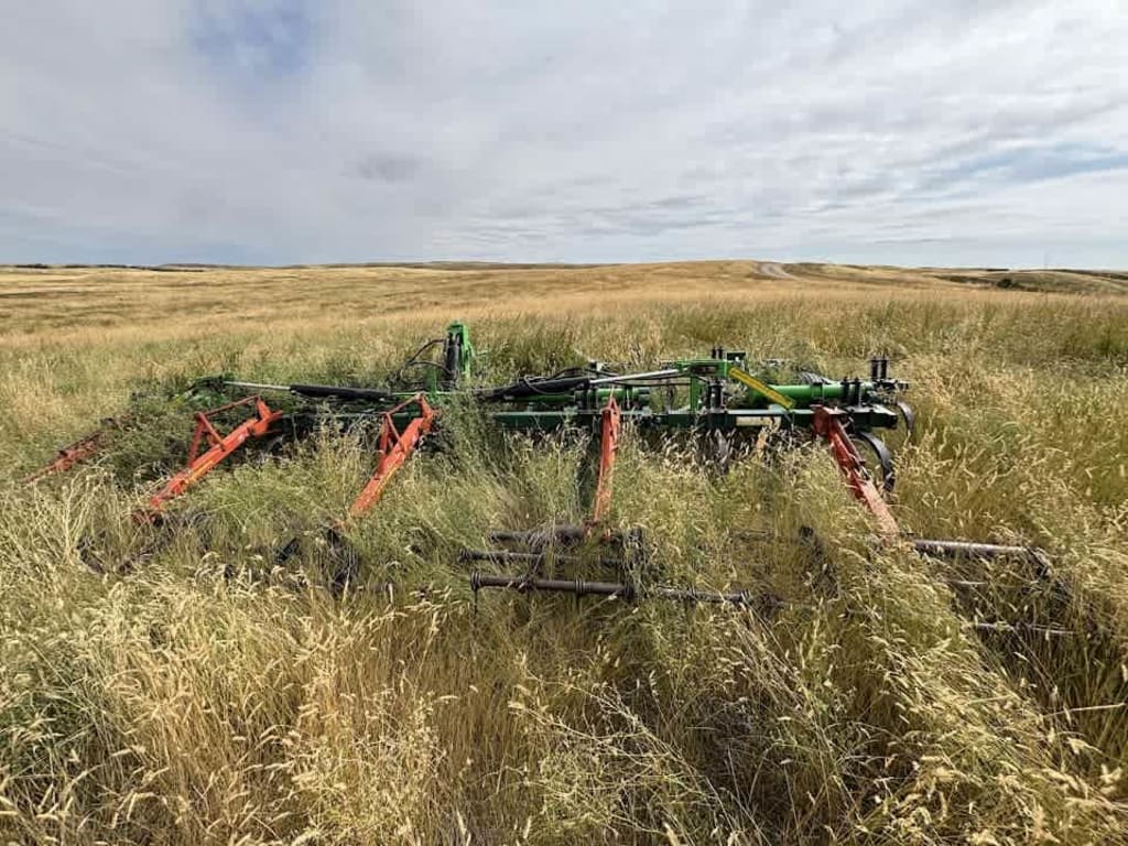 Co-op Implements 25’ Cultivator: Double spring shanks, Morris-mounted harrows for effective soil leveling and residue management.
