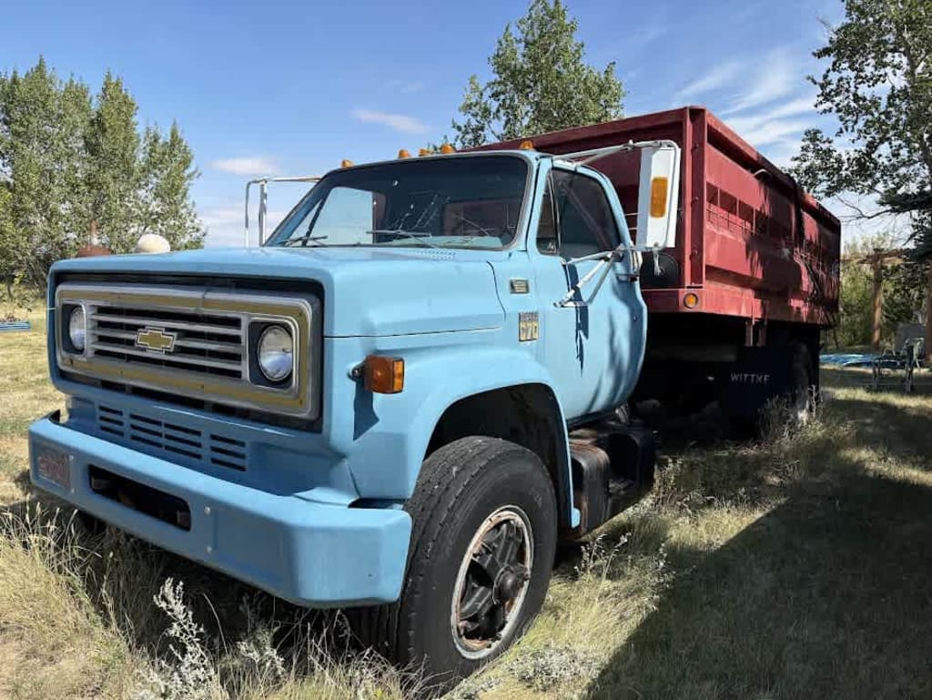 1979 Chevy C70 Single Axle Truck, 2 Speed Shift, 366 Gas Engine, Steel Box & Hoist, 3233kms at time of listing, S/N:C17DV9V112266