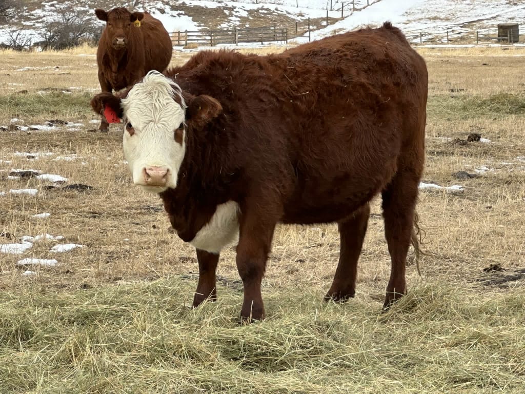 Summary | PETER & WENDY THOMPSON 10 Excellent RNK Hfrs Bred to easy calving, low birth wt Benchmark Angus Bulls. Bull in June 2nd. Out July 28th Full Herd Health Program; Cattlemaster Gold FP5. 8way & Ivomec Note: All Hfrs were palpated prior to breeding and fed grass, hay, and pellets |