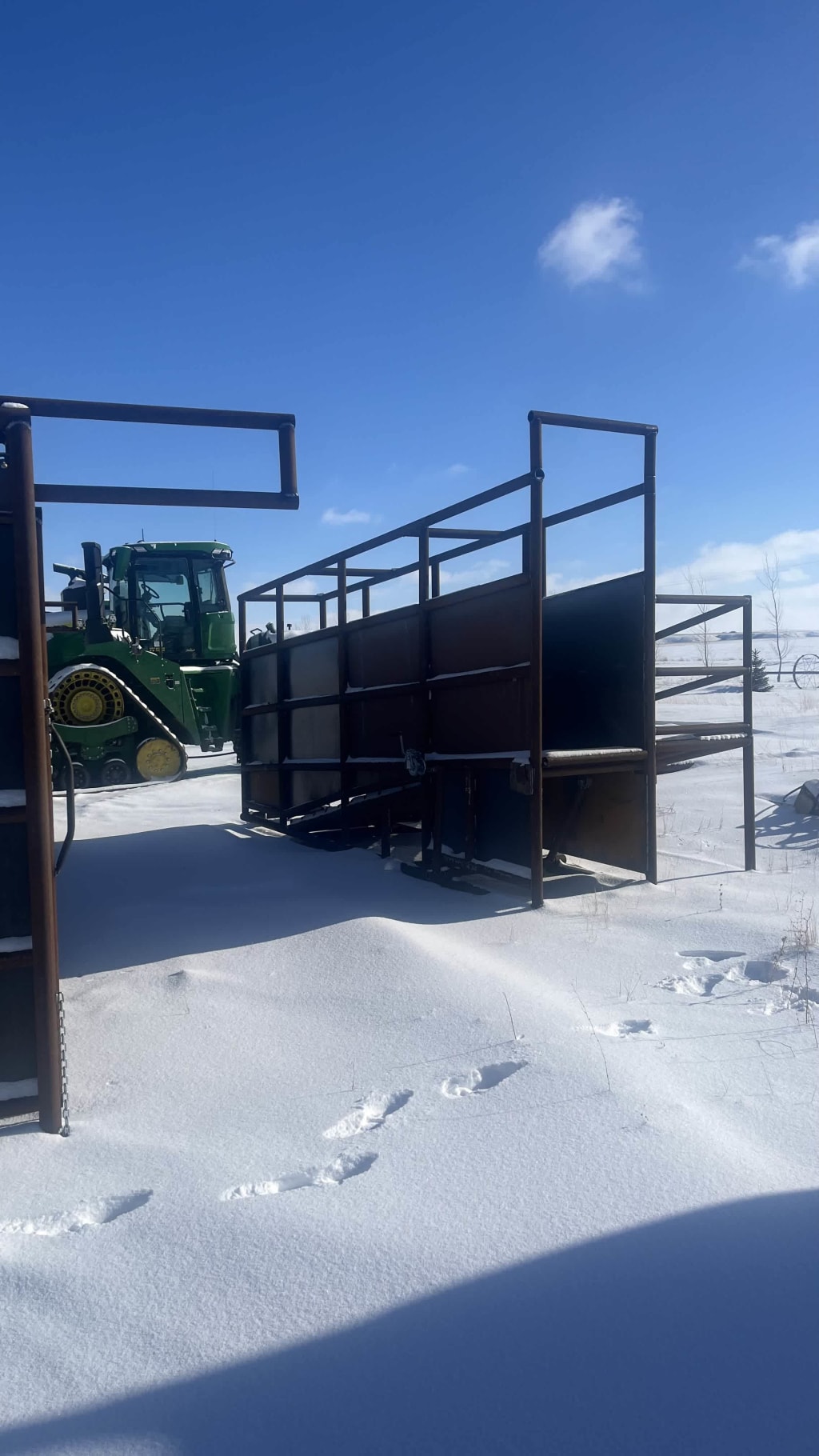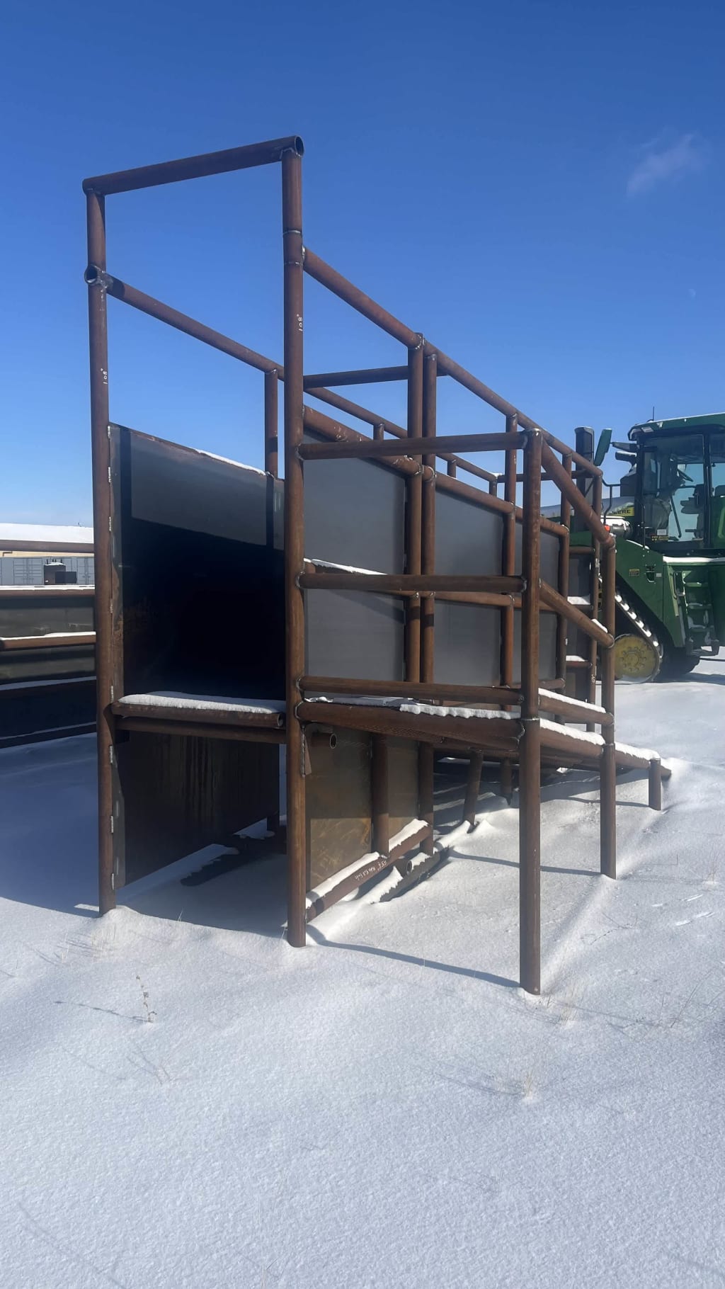 Loading Chute with Catwalk, Adjustable Floor, Use with Semi or Stock Trailer, 34in wide, 3 1/2in Drill Stem on the Bottom Frame, 2 7/8in Drill Stem Throughout, 12 Gauge Sheet Metal, Door At The Bottom Of The Chute