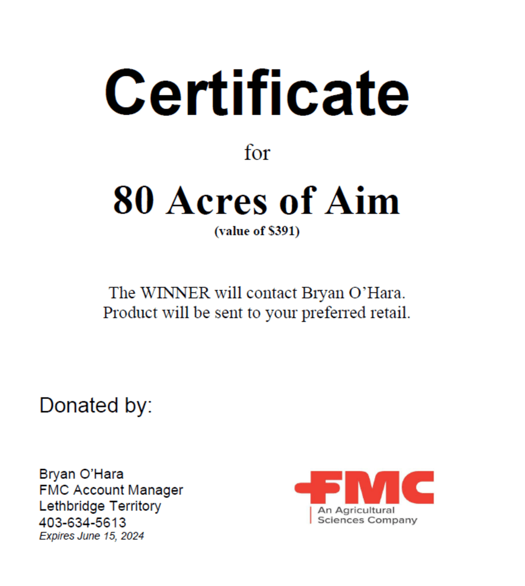 2 Jugs of Aim EC Herbicide. Winning bidder can contact Bryan O'Hara to select retail of choice for pickup. Thanks to Bryan O'Hara for once again sponsoring our silent auction.