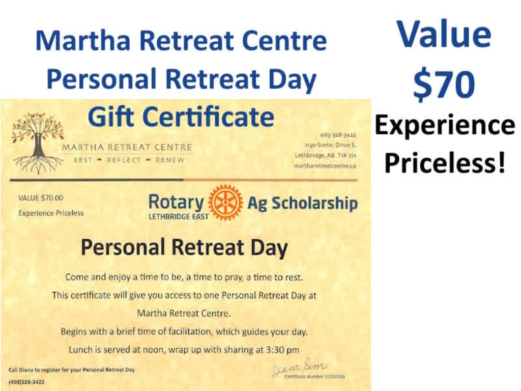 Personal Retreat Day - personal time to rest, rejuvenate with delicious lunch served at noon and wrap up time of sharing at 3:30 p.m.