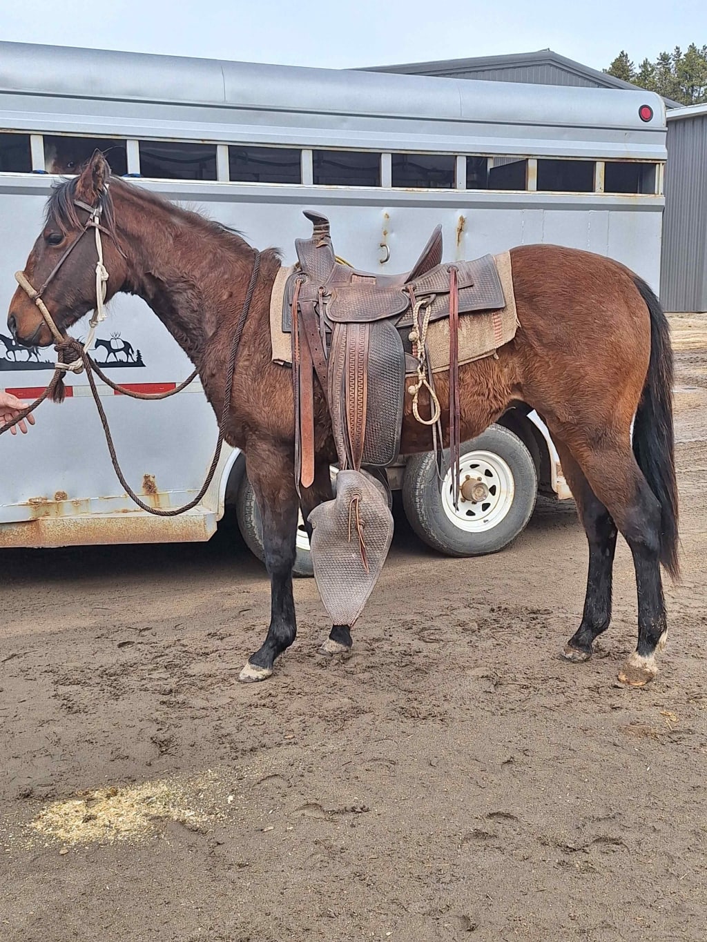 2 year old Bay QH colt is booked to be gelded on April 24th. He is in training aim to put 3 months worth on him before the sale. He is fully vaccinated and dewormed. Feet done once, training towards ranch horse.
