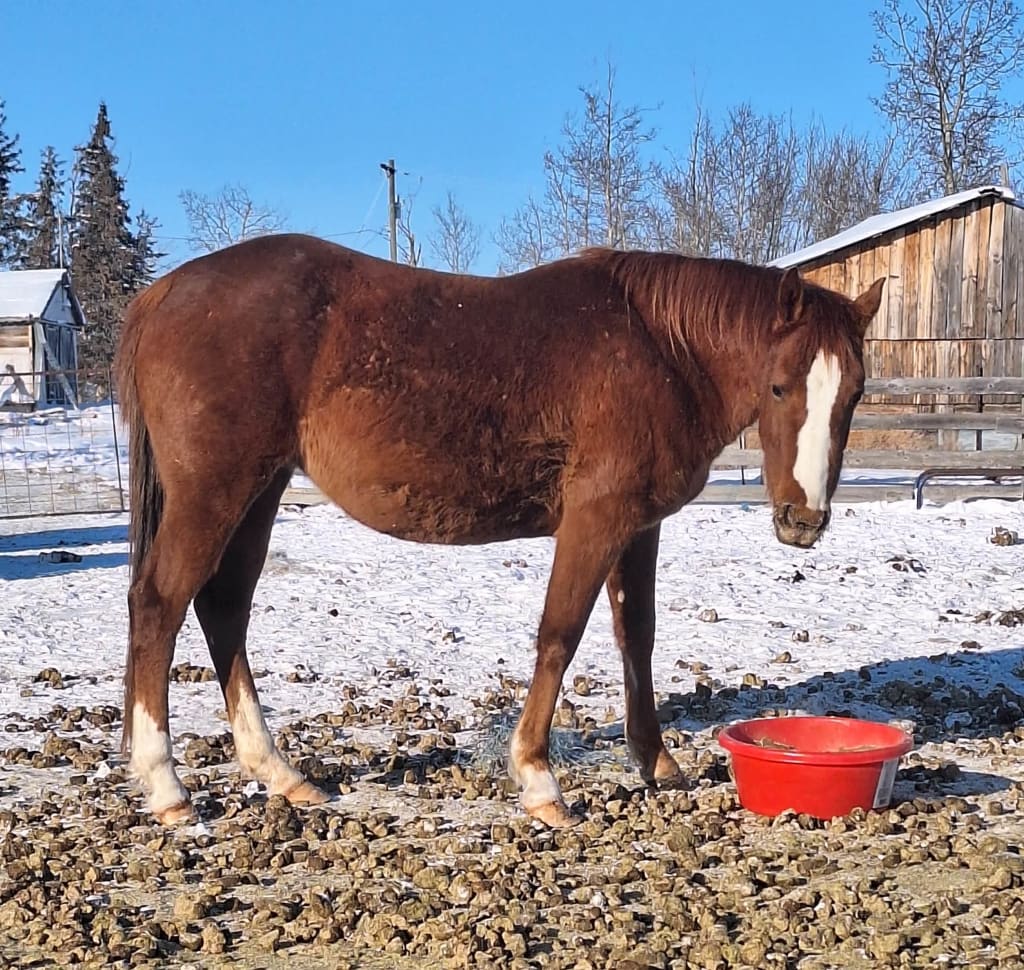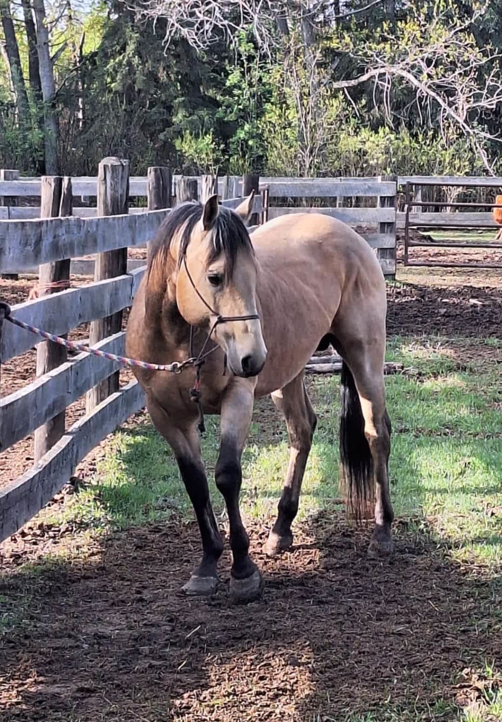 4 year old broodmare, is rideable, she is higher strung horse that has lots of go. Used mostly for pleasure, trail rides. She is bred to a Buckskin Quarter Horse, should foal end of May. Picture of stallion is posted here.