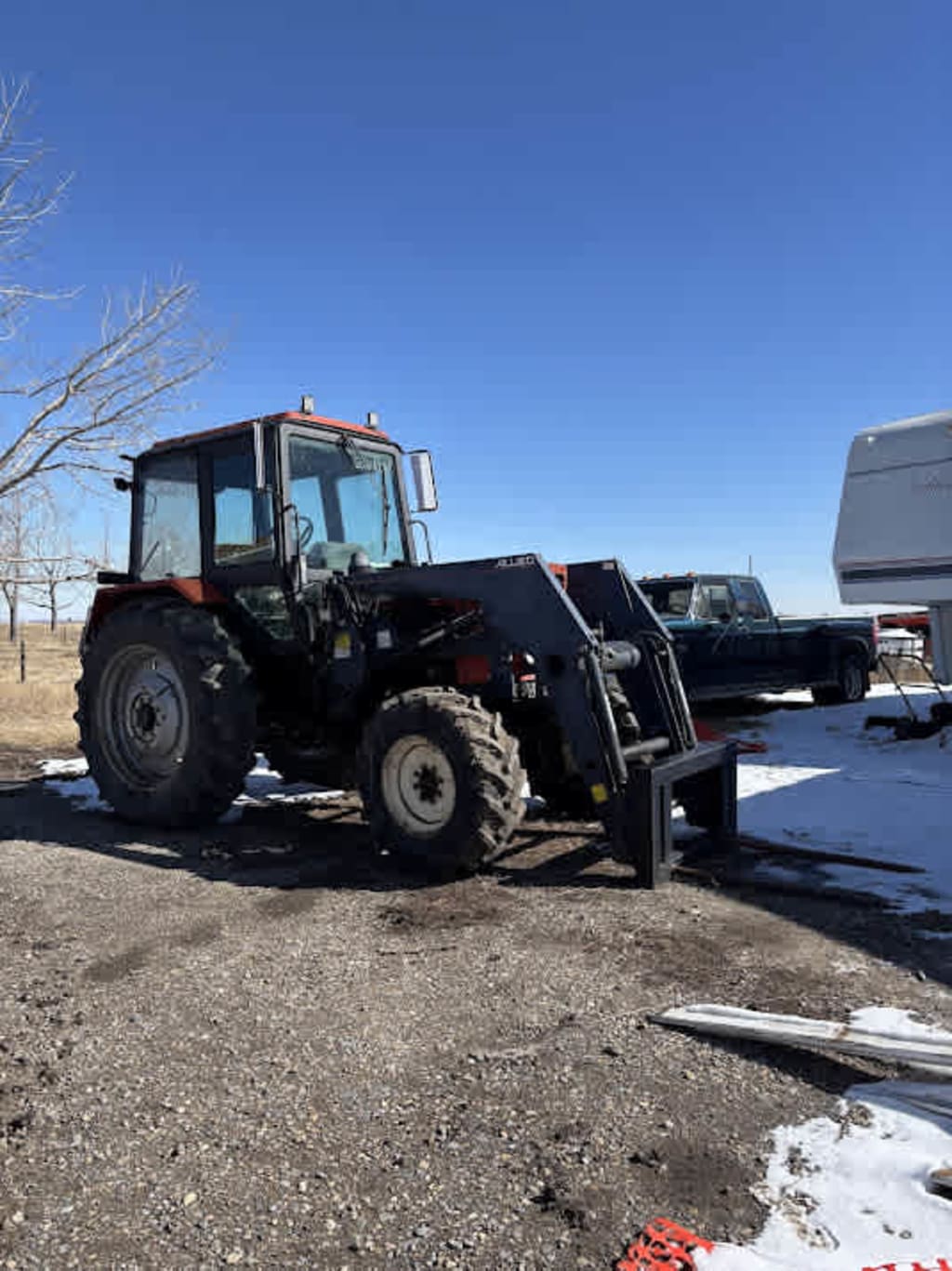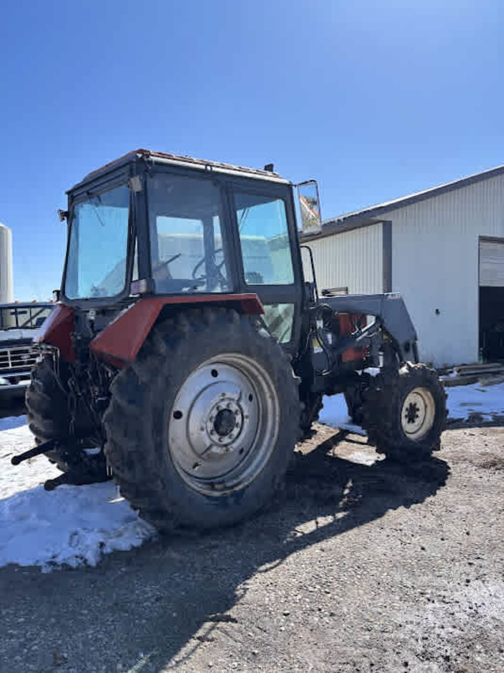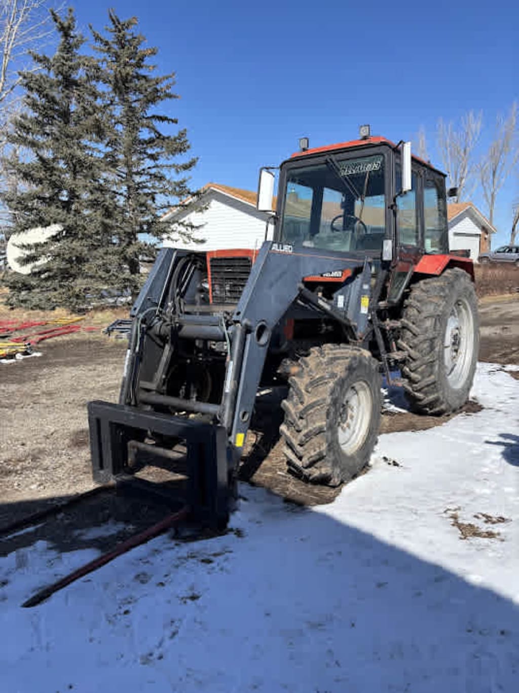 Diesel Tractor, FWA, c/w 595 FEL, 3PTH, 2 Spool Hyd, 540PTO, c/w Allied Bucket Mount Grapple Fork, 5338.8hrs at time of listing, 16.9-38 Rear Tires, SER: 414364