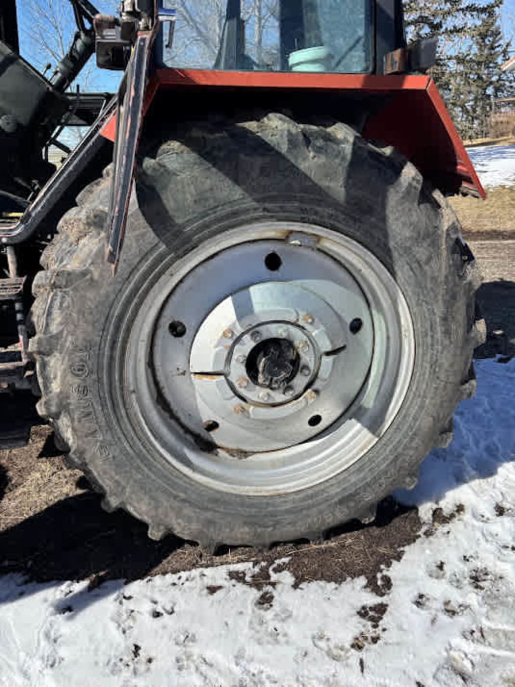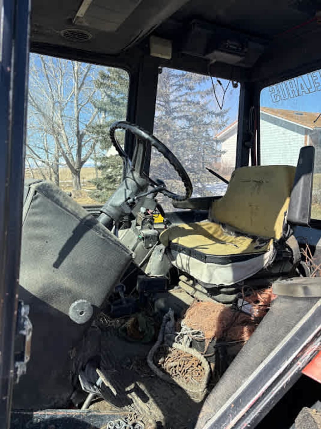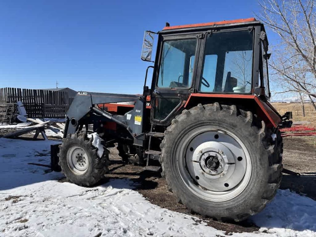 Diesel Tractor, FWA, c/w 595 FEL, 3PTH, 2 Spool Hyd, 540PTO, c/w Allied Bucket Mount Grapple Fork, 5338.8hrs at time of listing, 16.9-38 Rear Tires, SER: 414364