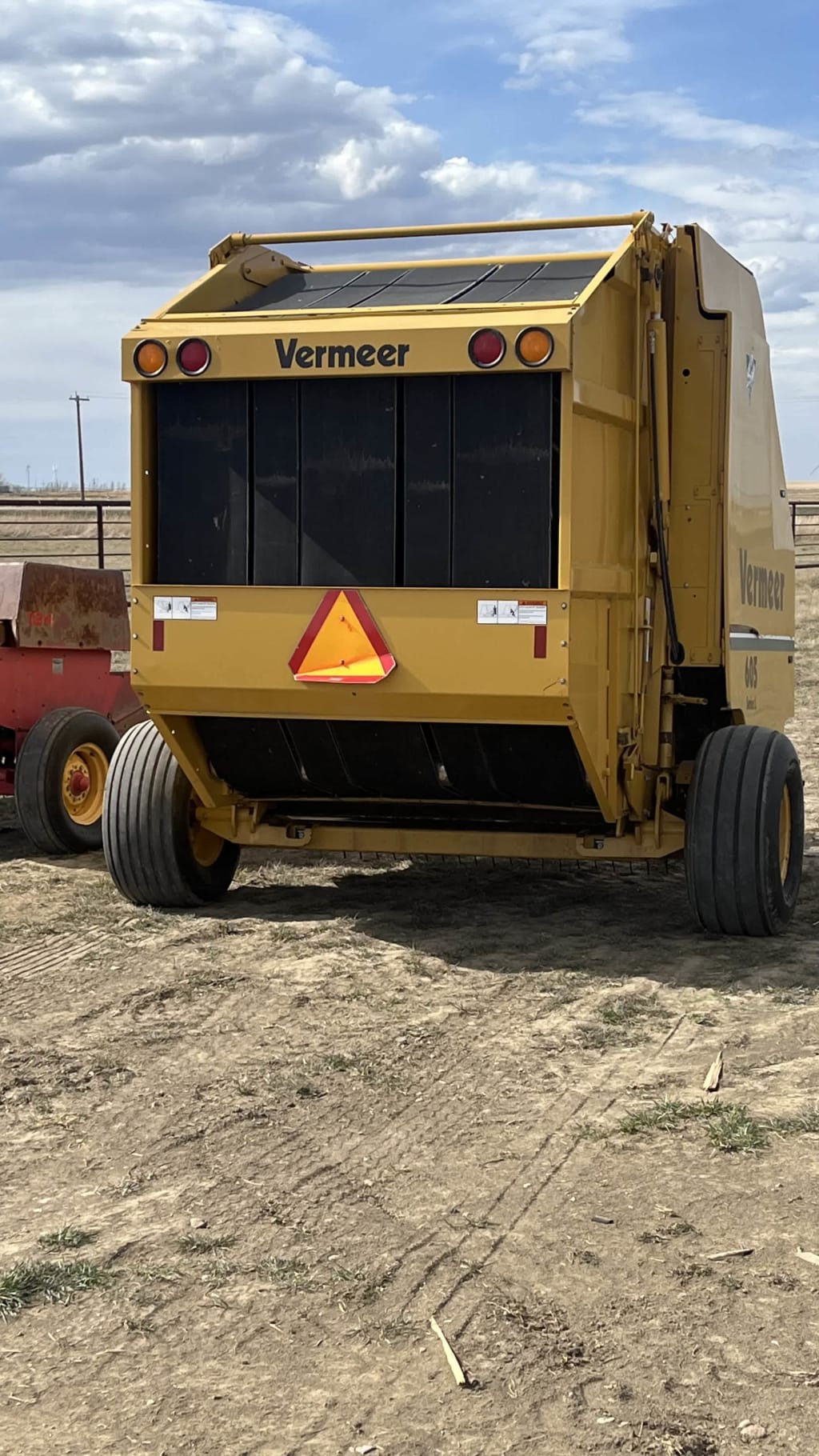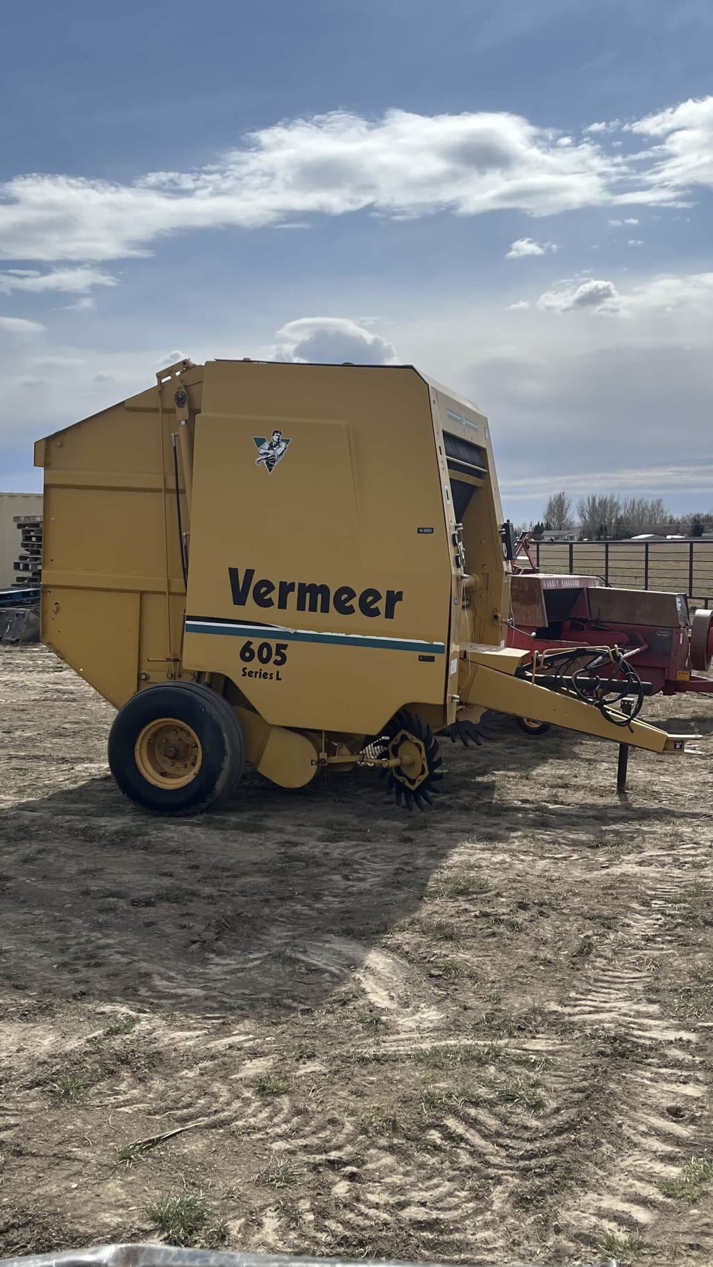 Vermeer 605 Round Baler Series L, Twine Tie, Comes with Gathering Wheels, 540 PTO, 6650 Bales, 31 x 13.5–15 Tires Serial number 1VRR14LE3W1000258