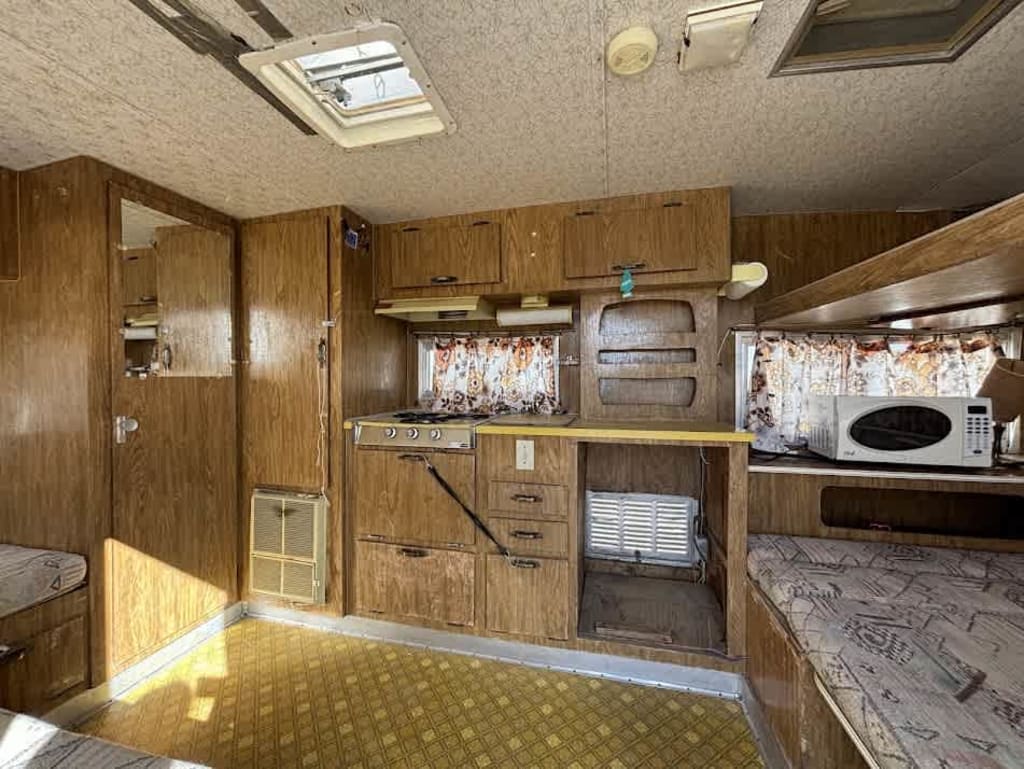 Description | Propane Furnace and Stove, Water Tank, Running Water to Kitchen Sink and Bathroom, Full Size Closet, Sleeps 6, Table and LIving Room Area, Tool Compartments, Numerous Cupboards, Spare Tire, Under 3000lbs, 30 Year Owner and Upkeep |