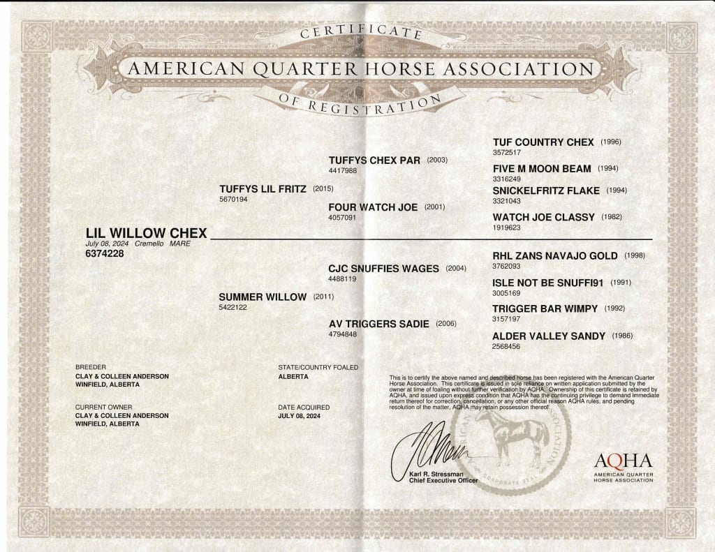 Horse Name | LIL WILLOW CHEX |