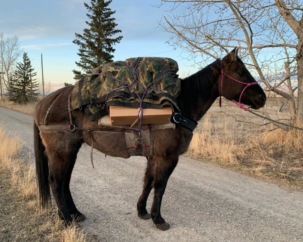 Been packed in the mountains. About 15hh, easy to catch, sound. Good with other horses. Can be turned out for 6 months and catch him and hes the same horse. Ties good.