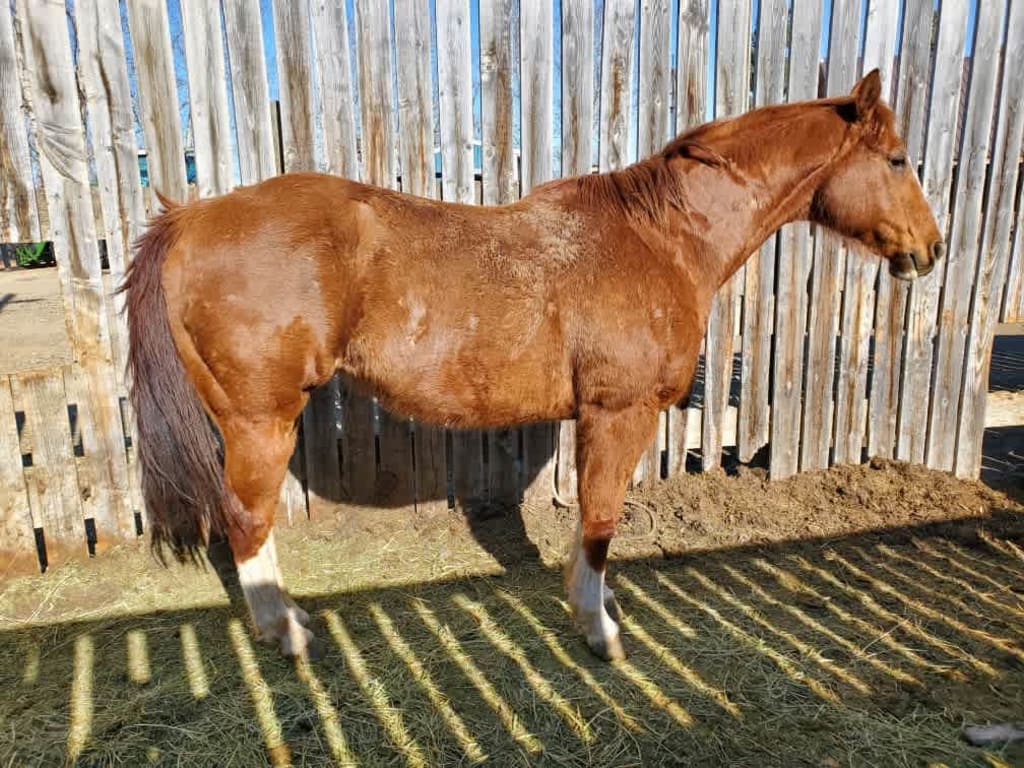 8 year old gelding, working on a ranch for a couple of years and feedlot too. Very nice quiet gelding to be around with no buck. Could make a pick up horse.