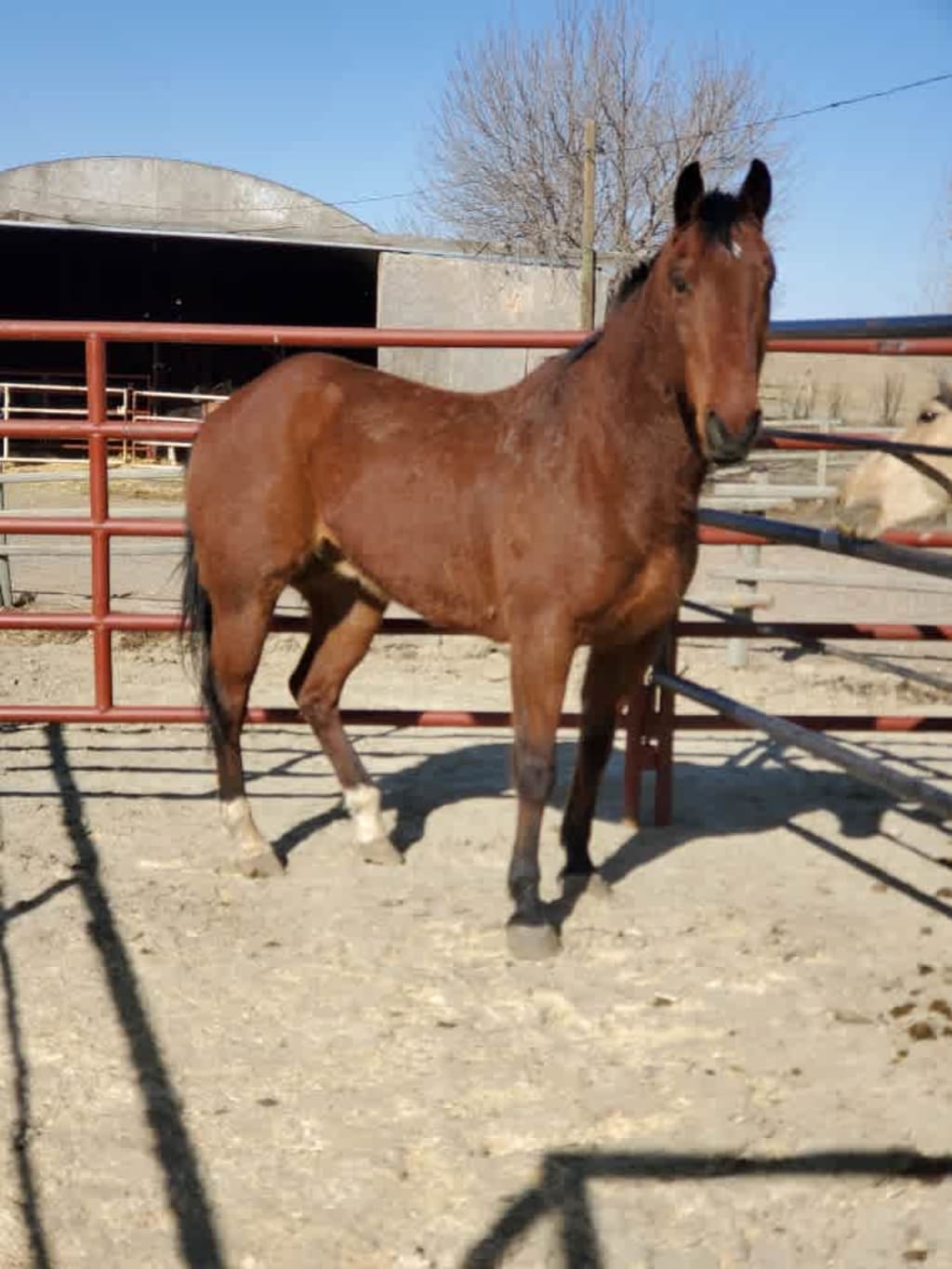 12 years old used as a pack horse but working on a ranch and feedlot now. Nice horse and quiet no buck.