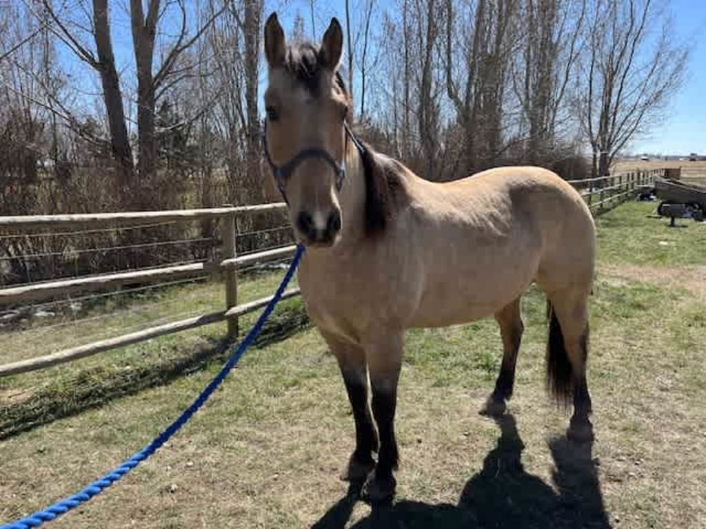 Tug...if your looking for an athletic horse that loves to work this is him. 15 years old but don't let that scare you- he's got more get up and go than most 2 year olds. Good feet. He's had lots of feedlot experience, but for the last year taking it easy, so he's bored and needs to go to work. He's been working cattle on ranch the last 3 weeks and will be ready to go. Needs an experienced rider.