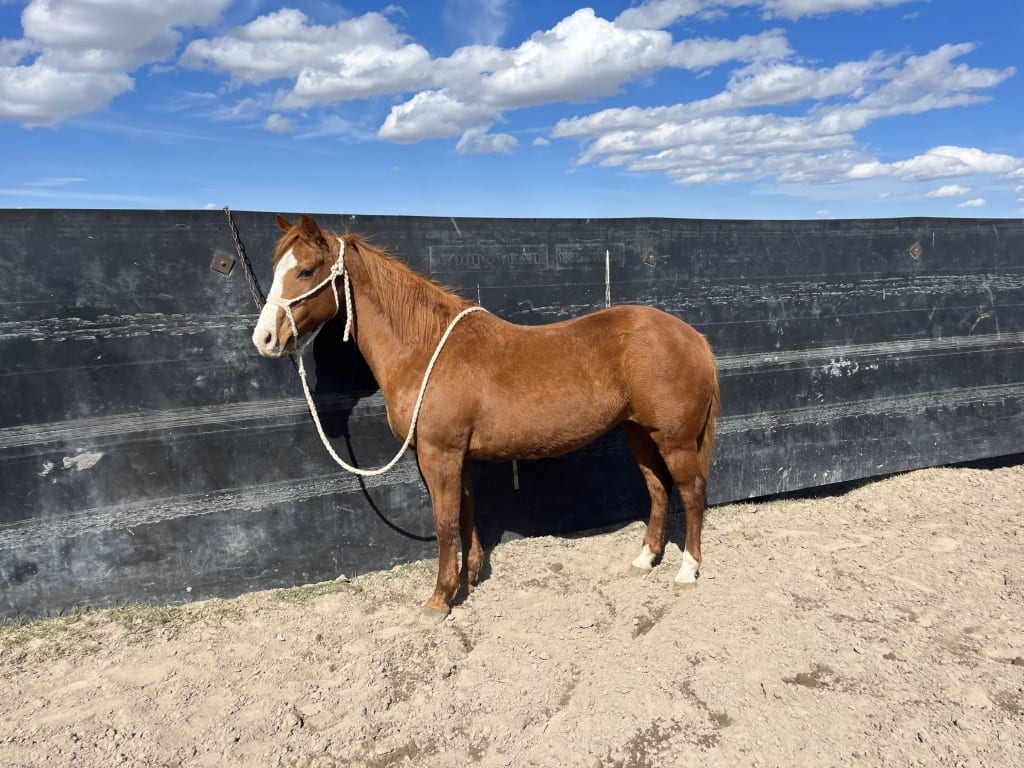 Sally is sweet and gentle middle aged grade mare. Can be a bit timid. Handling pressures in the calving field and teaching's to cut a cow. Ready to be finished out to your liking!