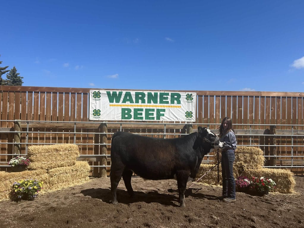 My name is Chloe Baron and this is my fourth year in 4H. My first ever project was an Angus heifer, now I'm trying angus steers. Some of my favourite hobbies are riding horses, volleyball, and working with my 4H and bottle calves. My steers name this year is George and he is an Angus cross.