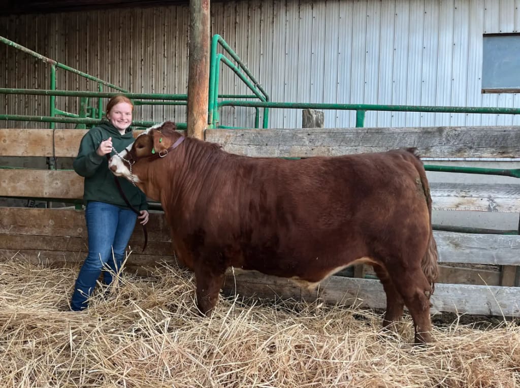 This year I have a Simmental Angus X named Red Bandit, who should finish off the year at around 1600 lbs.