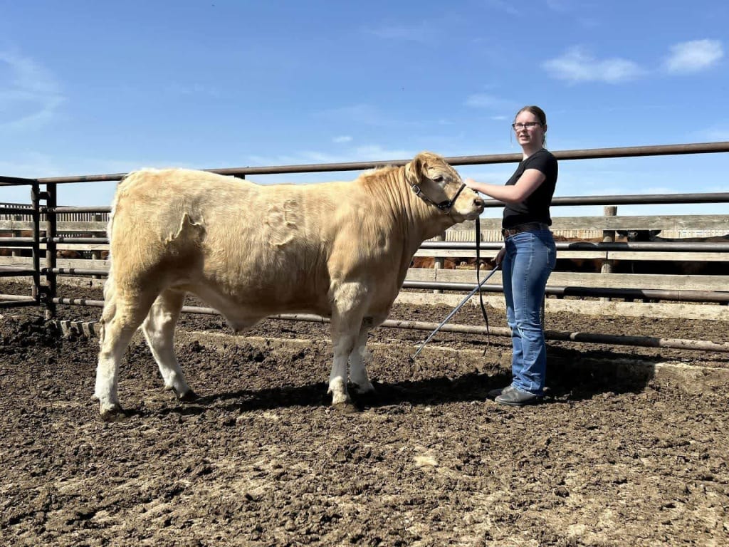 This year I have a show steer and a carcass steer. My show steer is a Charolais named Stetson and my carcass is a Black Simmental named Brodie. So far, Stetson has been a great steer to work with and is usually calm.