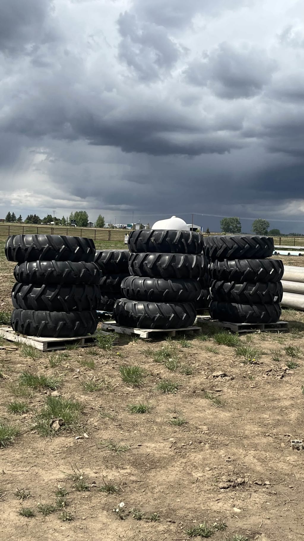 5 pallets of pivot tires and rims 4 or 3 tires per pellet 14.9-22 sold by the pellet