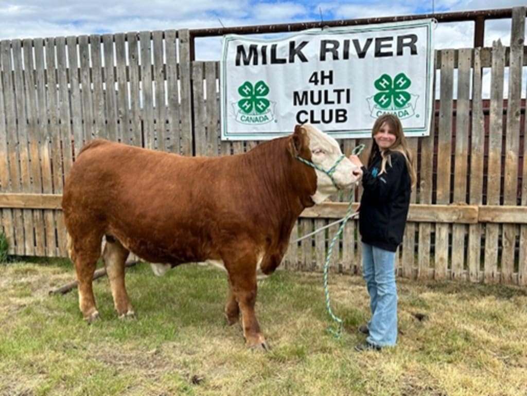This is my 3rd year in 4-H and my 1st year with a Beef Project. I've had a lot of fun with it. My steer Spot got soooo big soooo fast! I think he will weigh 1,450lbs at sale day. Usually I lead him but sometimes he is the one leading me.