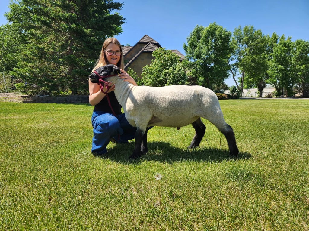 My name is Ainsley Schweitzer. This is my 8th year in 4-H. This year I am showing five projects a market Lamb, market beef, prospect ewe and a yearling ewe with her lamb, but unfortunately my Heifer died. My other hobbies/sports outside of 4-H are basketball, track and field, Alberta High School Rodeo, surfing and snowboarding. My market lambs name is TJ, he is a Suffolk Lamb out of one of my previous 4-H Ewe projects. He's done well so far with his training and I have had fun this year teaching the younger and new kids in our club how to work with and show sheep.
